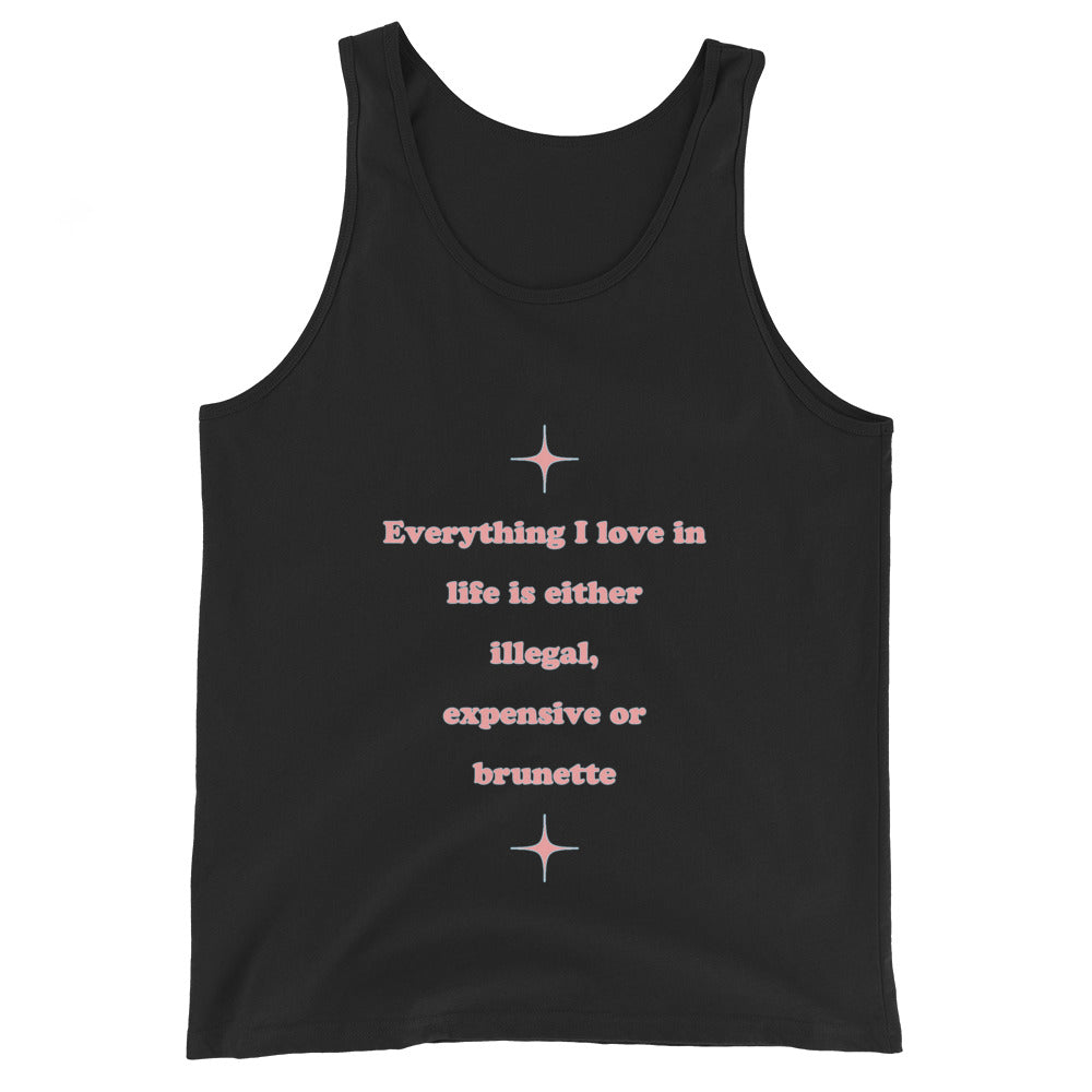 Alles, was ich im Leben liebe, ist entweder illegal, teuer oder brünett. Tanktop