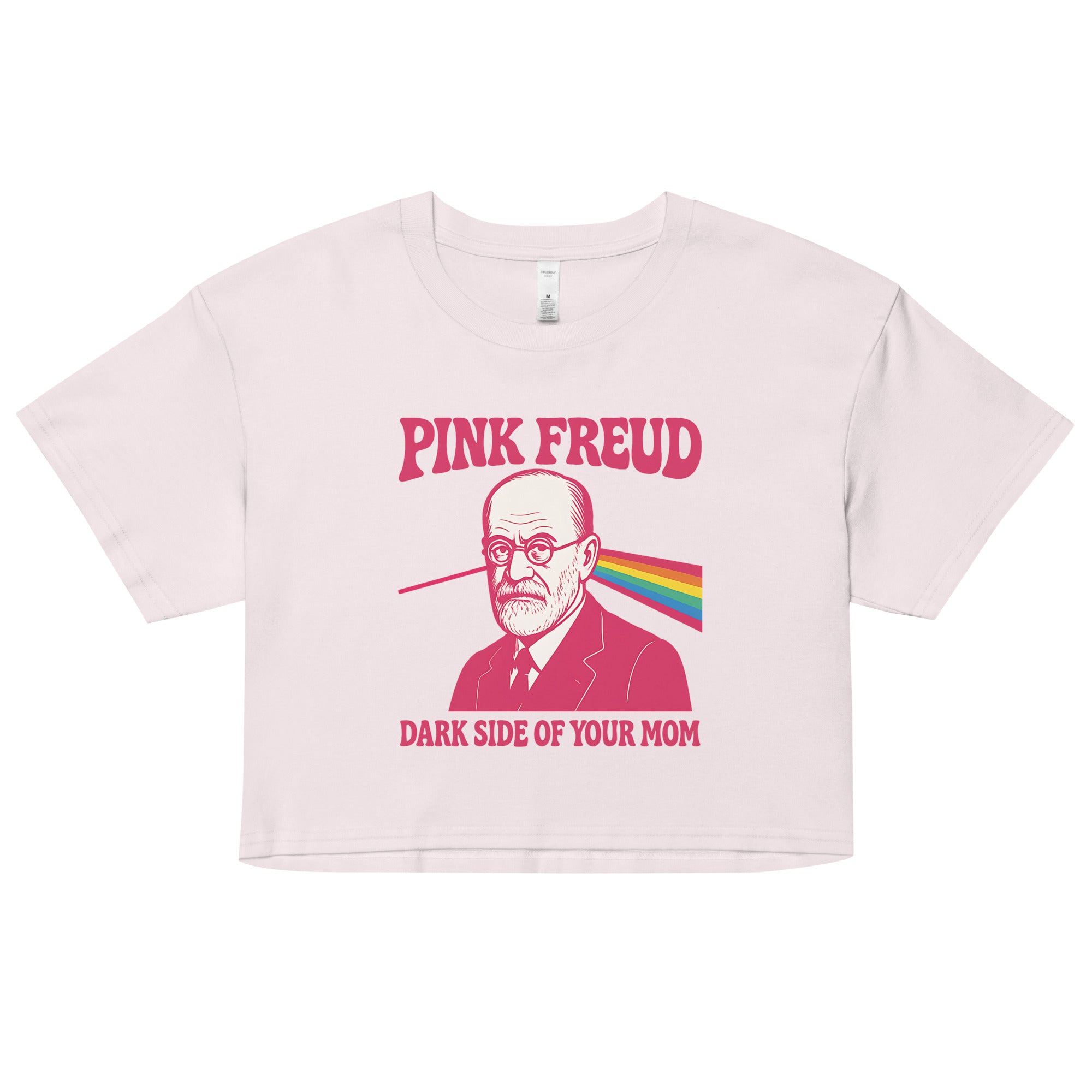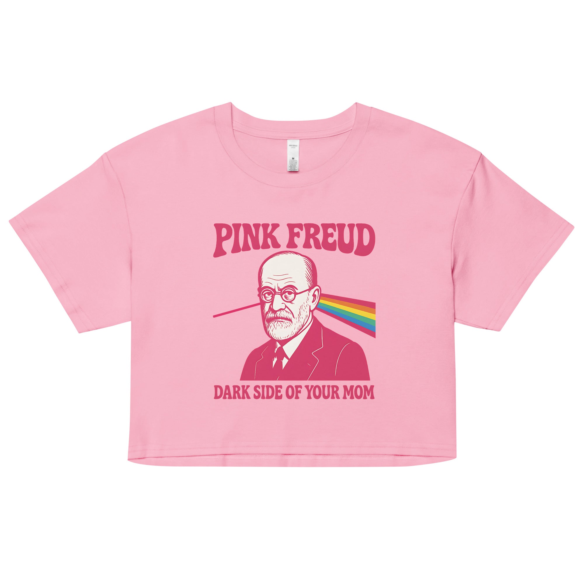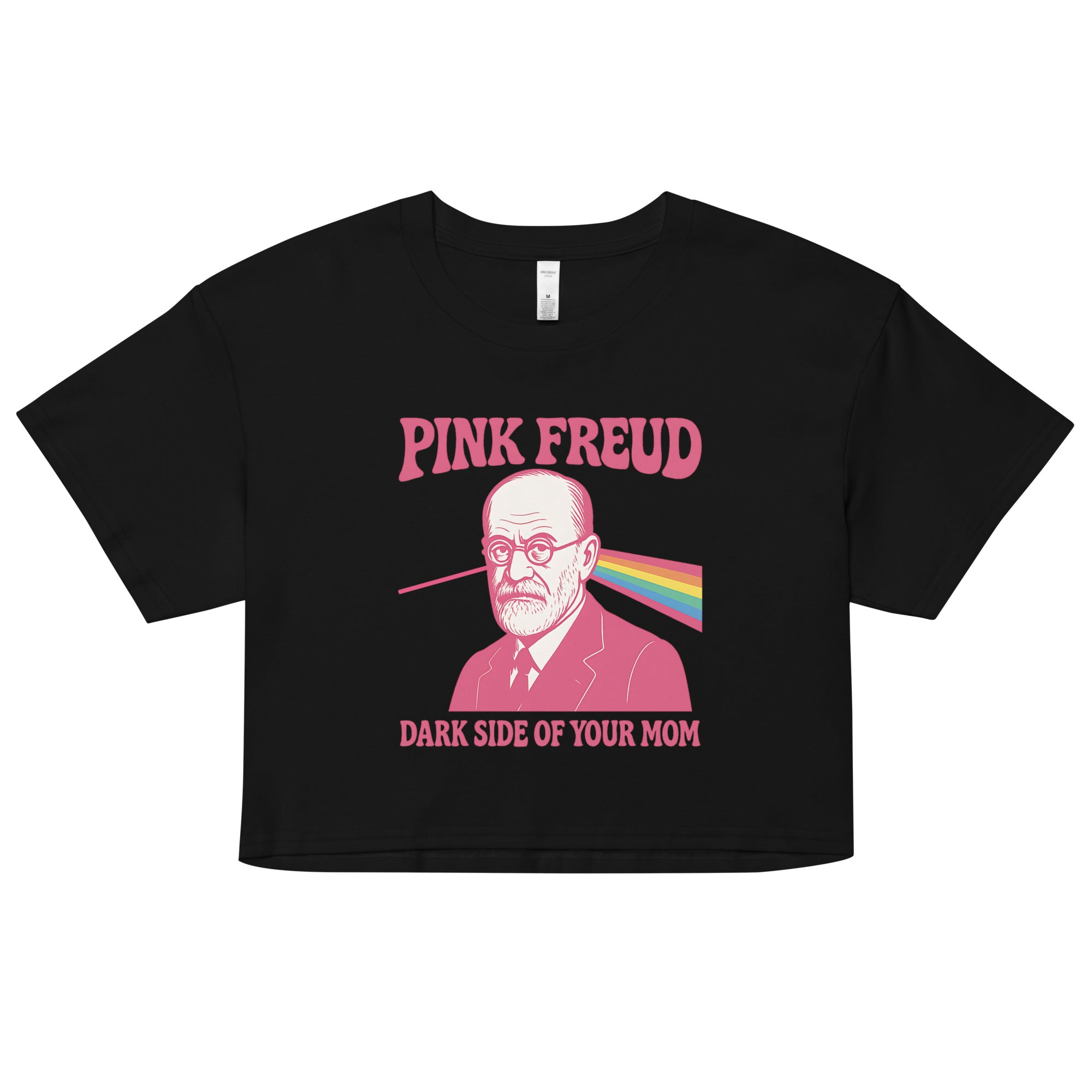 Women’s crop top featuring our iconic Pink Freud Dark Side of your Mom value design.
