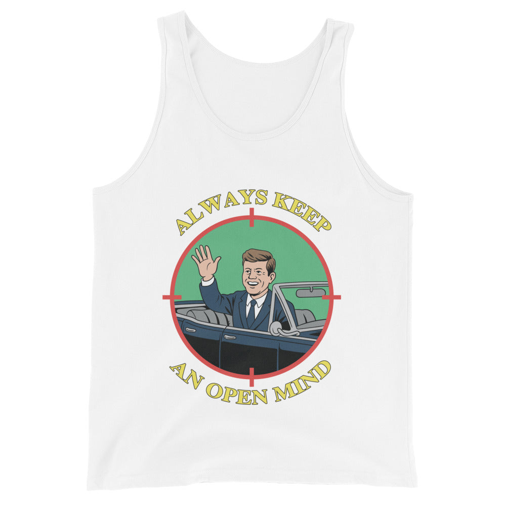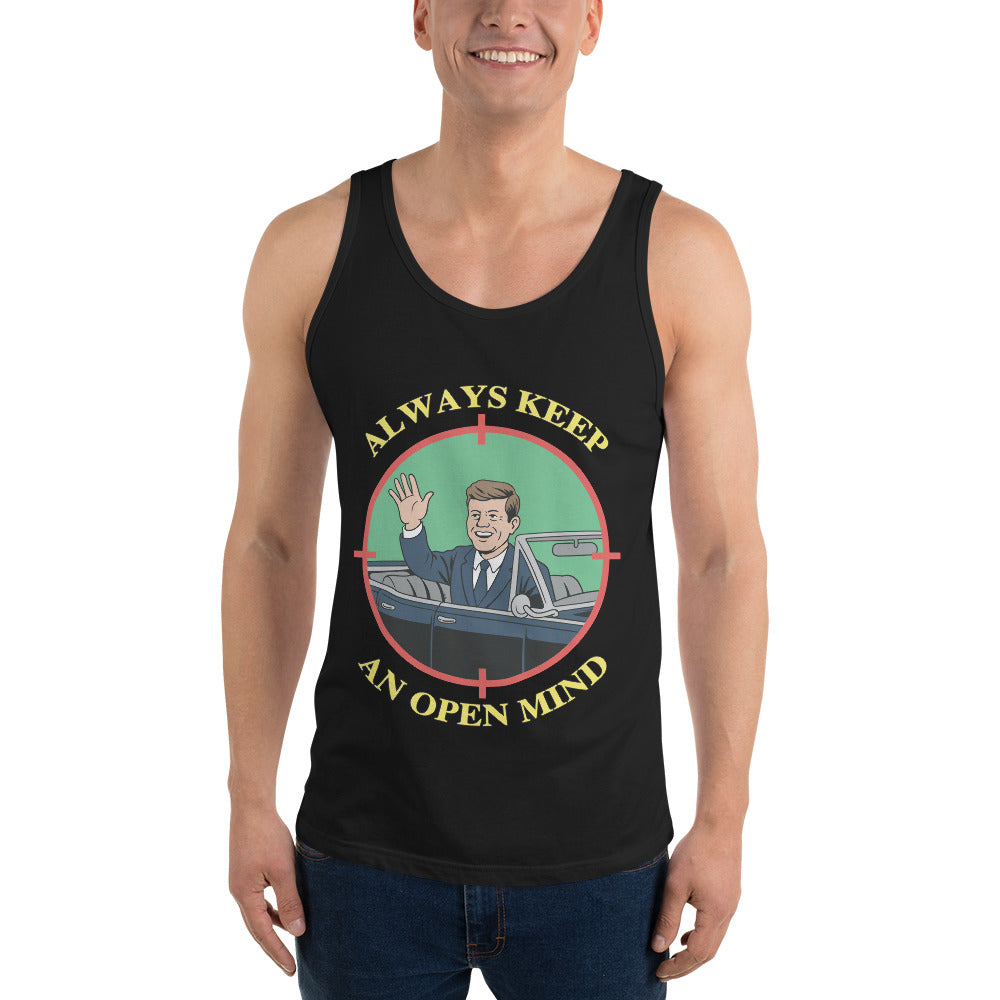 Tank Top featuring our iconic Always Keep an open mind JFK design.