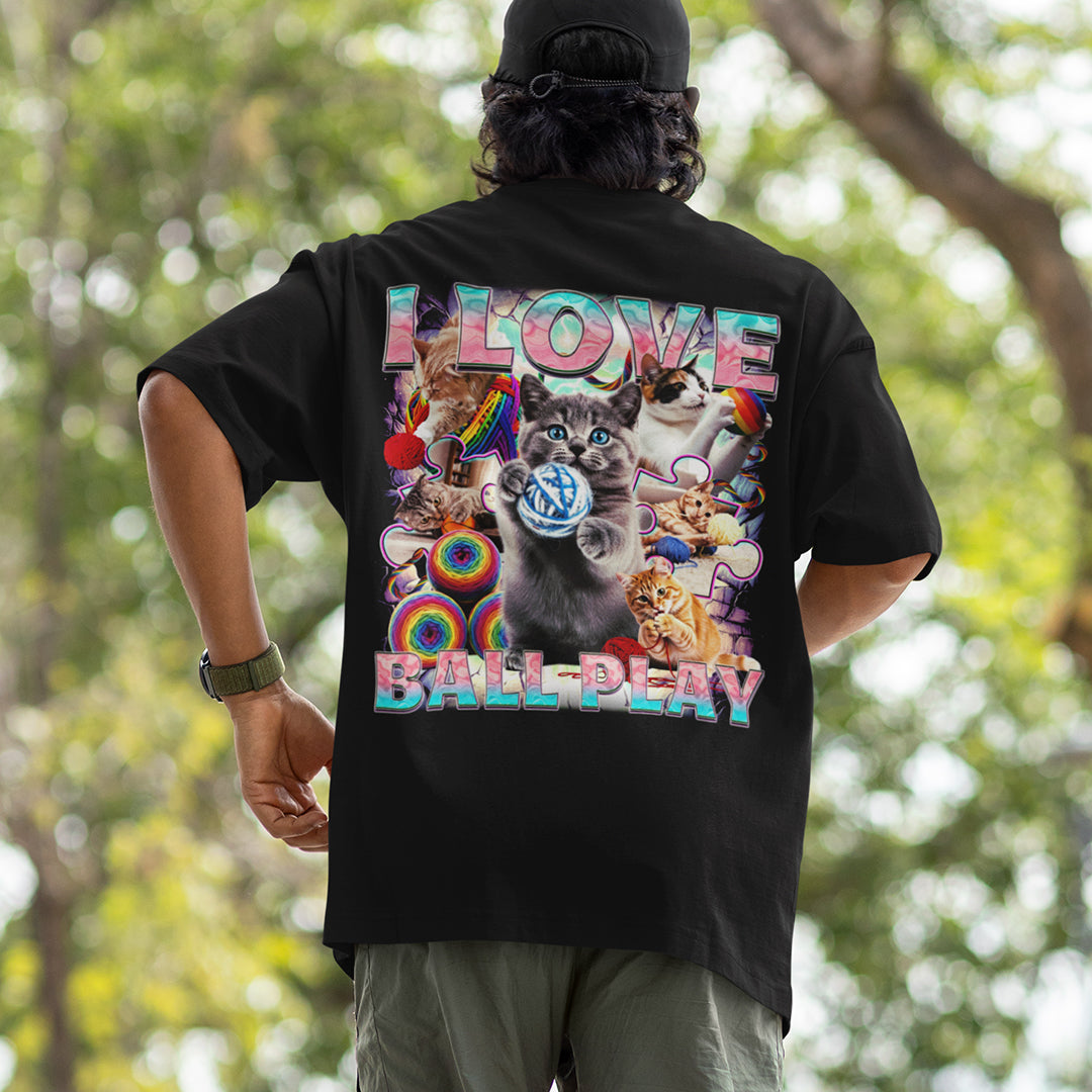 I love ball play (cats) T-Shirt (backprint)