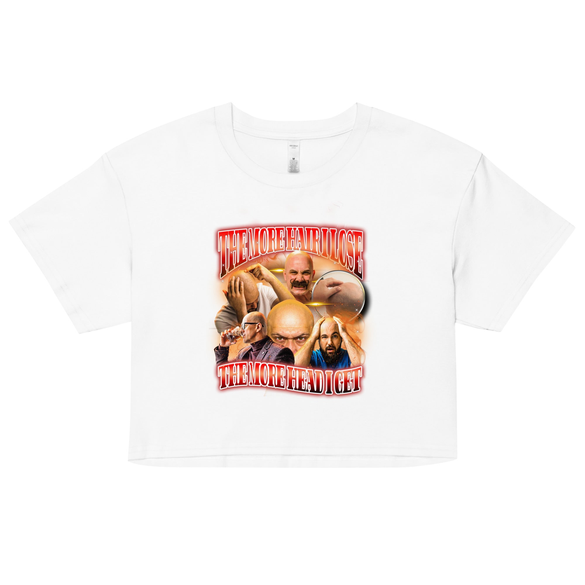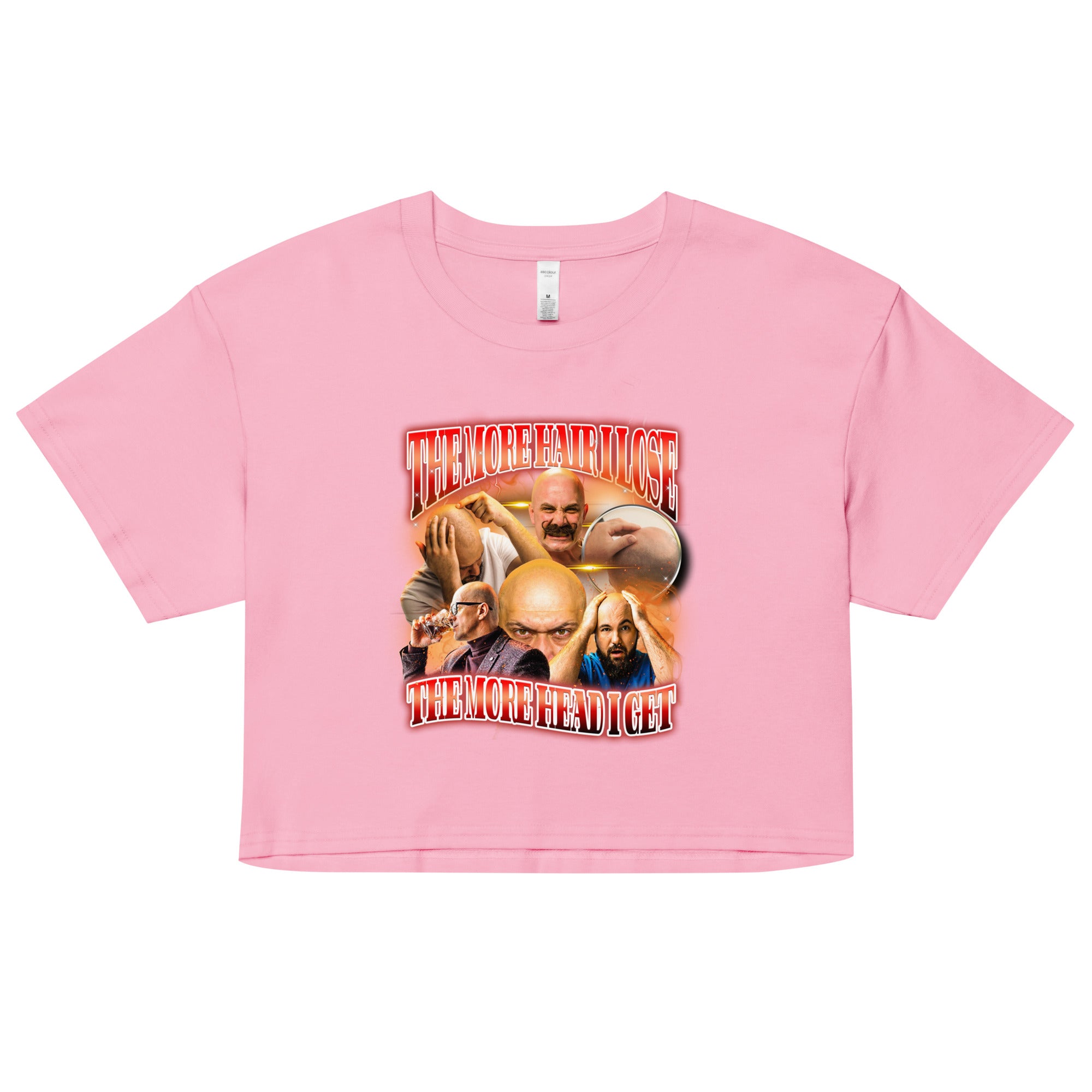 Women’s crop top featuring our iconic The more hair I lose the more head I get value design.