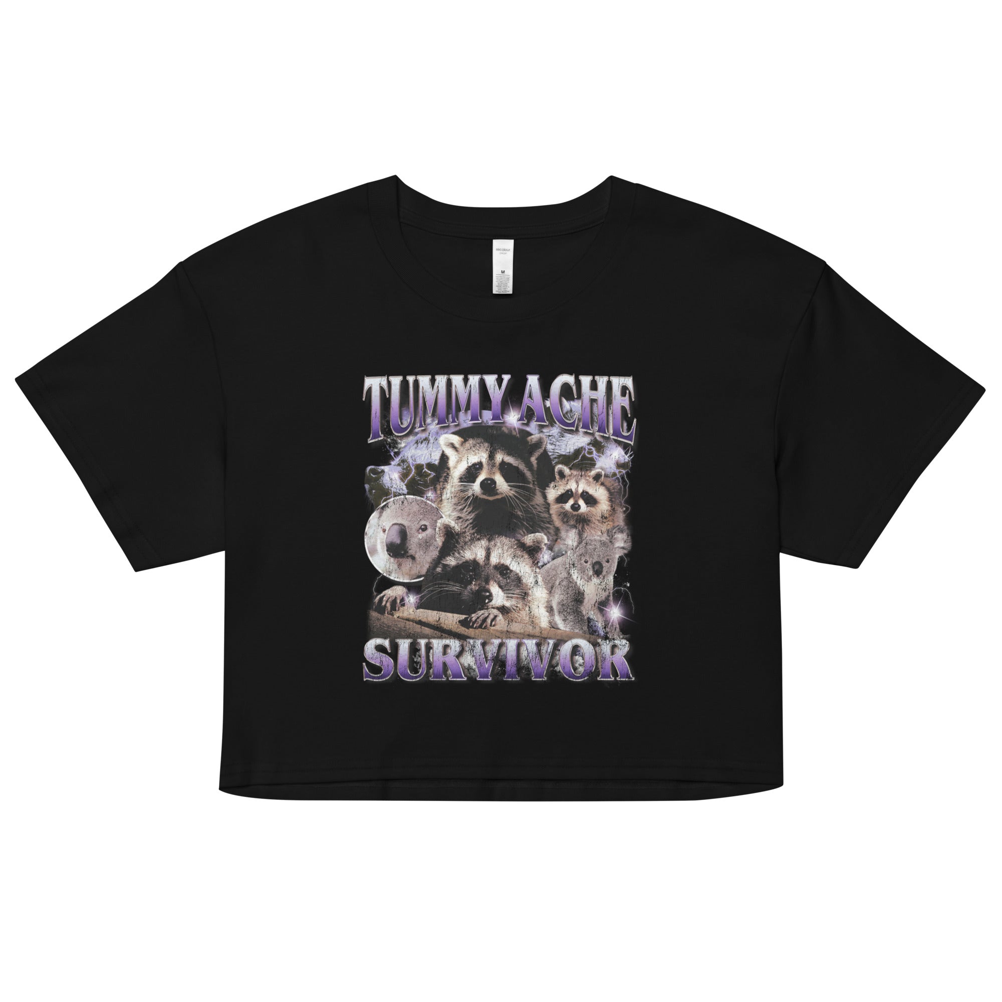 Women’s crop top featuring our iconic Tummy Ache Survivor Banter design.