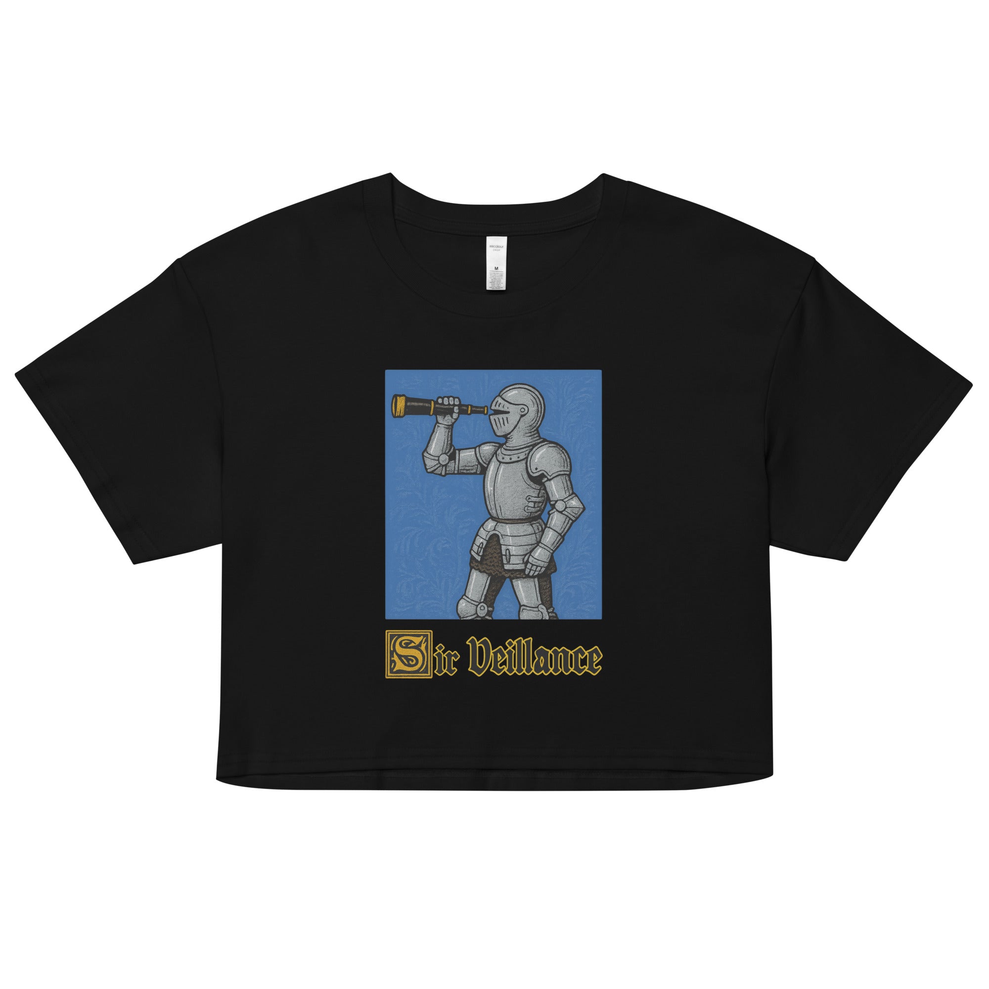 Women’s crop top featuring our iconic Sir Veillance Handdrawn value design.